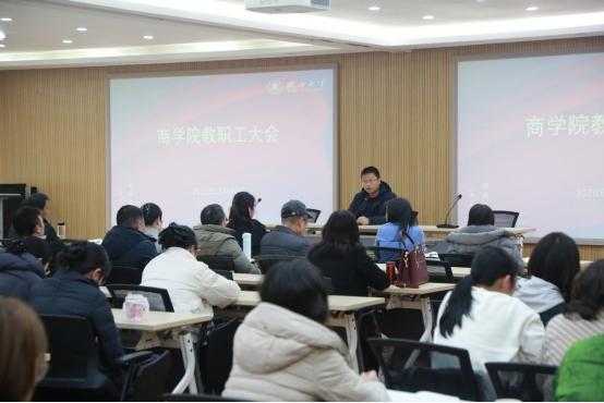 3月4日下午,学院在逸夫楼C2014报告厅召开新学期第一次教职工大会。会议由学院党委书记何肖主持,全体教职工参加会议。