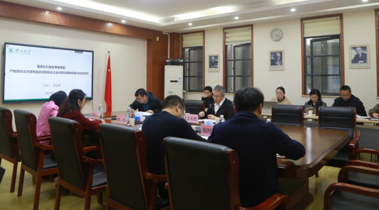 会议第二阶段为国家基金申报指导,由程时雄院长主持。王永贵校长与陈金勇、肖泽华、王坤和黄玛兰等工商管理学科青年骨干教师深入交流,逐一审阅申报材料,就选题立意、研究方法、创新点凝练等内容进行了精准指导,现场气氛热烈、互动频繁。