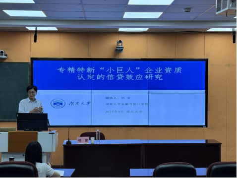 为提升304am永利集团师生学术能力,学院于9月17日邀请到湖南大学金融与统计学院货币金融系明雷副教授,作题为“专精特新‘小巨人’企业资质认定的信贷效应研究”的学术讲座。讲座由304am永利集团副院长王鸾凤主持,相关学科专业教师、学生70余人参加讲座。